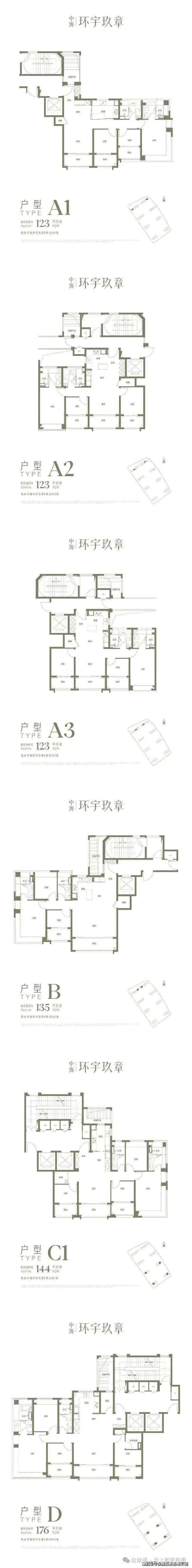 产品力强:主力户型123-176㎡,层高3.15-3.3米,多阳台设计,得房率高。