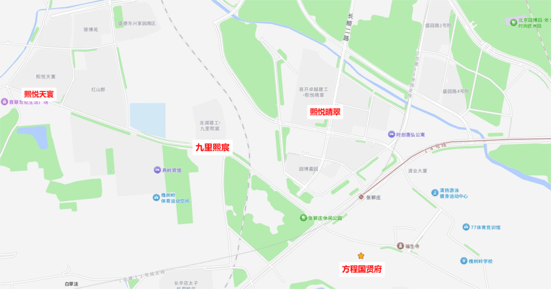 项被513公顷园博园、13.96公顷张郭庄休闲公园、永定河滨水廊道环绕,绿色空间占比远超主城平均水平。
