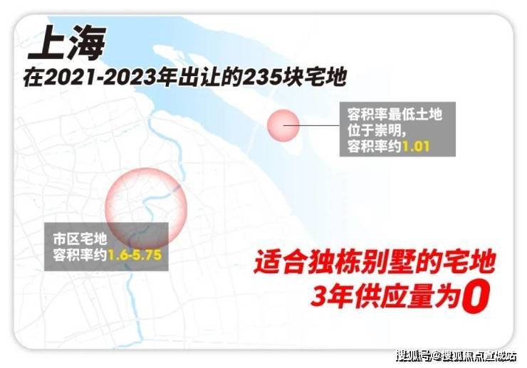要知道,上海如今已经取消出让容积率1以下的土地了。在2021-2023年出让的235块宅地中,容积
