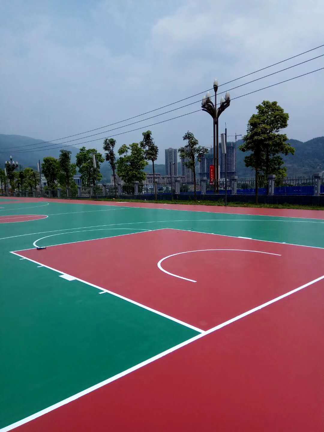 硅PU球场材料由有机硅改性聚氨酯制成,其核心优势在于通过分子结构设计,实现了弹性层与面层的性能协同。弹性层厚度通常为3-8mm,可有效缓冲运动冲击力,降低运动员关节损伤风险;面层则采用防滑颗粒技术,摩擦系数稳定在0.5-0.7之间,即使雨天也能保持良好抓地力。以标准篮球场为例,一块420㎡的硅PU球场,其使用寿命可达8-10年,远超传统丙烯酸材料的5年周期,综合成本降低约40%。
