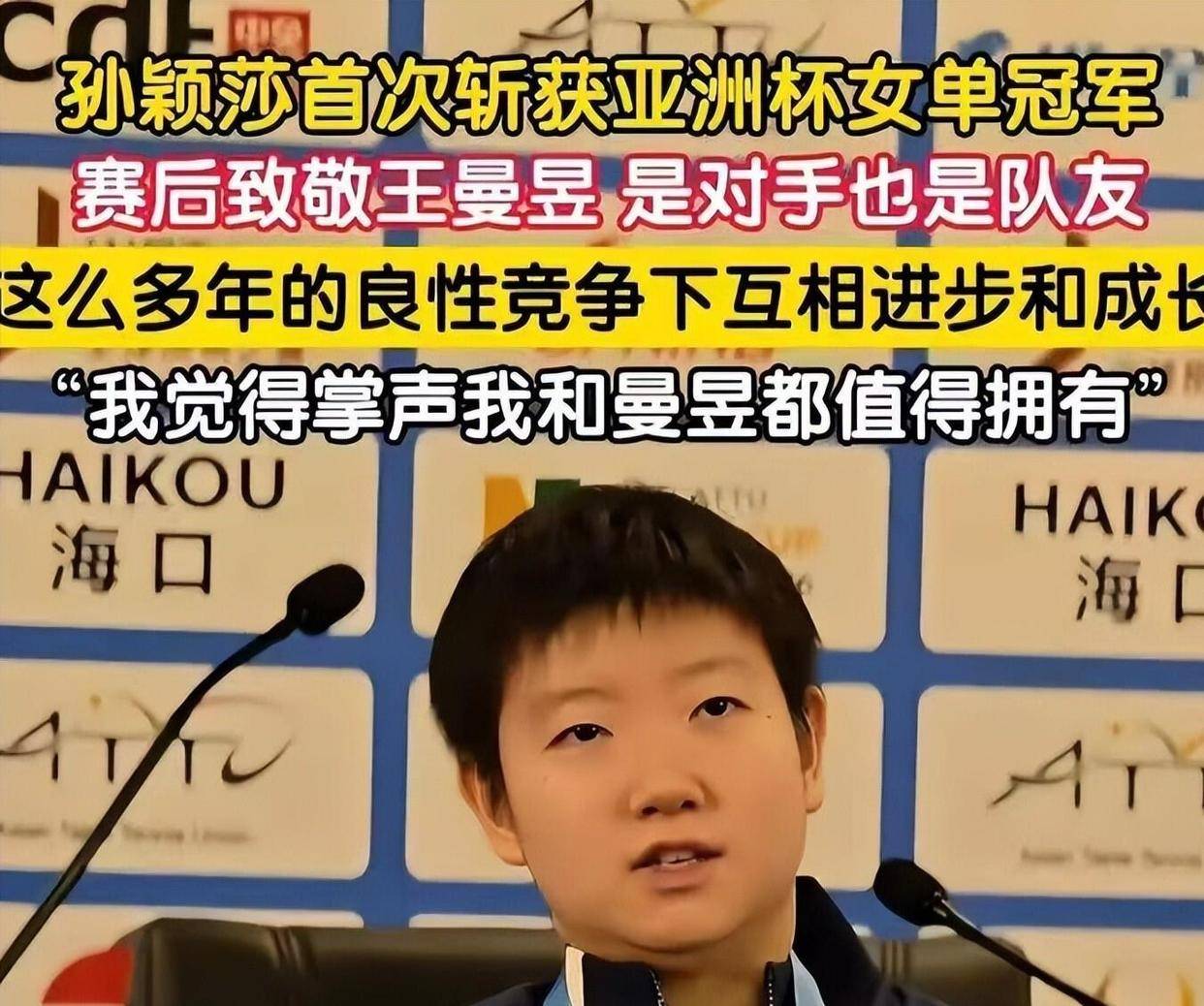 这场胜利让孙颖莎集齐了所有洲际大赛的单打冠军,完成了“洲际大满贯”。 但比金牌更引人注目的,是她在那个足以让任何运动员心态的争议时刻,所展现出的那种近乎冷酷的平静和专注。 赛后,被问到这个球,她说:“这都是比赛的一部分。 ”这句话轻描淡写,却重若千钧。 然而,谁也没有想到,这场本该载入史册的经典对决,在夺冠后不到48小时,竟演变成一场席卷全网的舆论风暴。 而风暴的中心,不是冠军孙颖莎,而是亚军王曼昱。