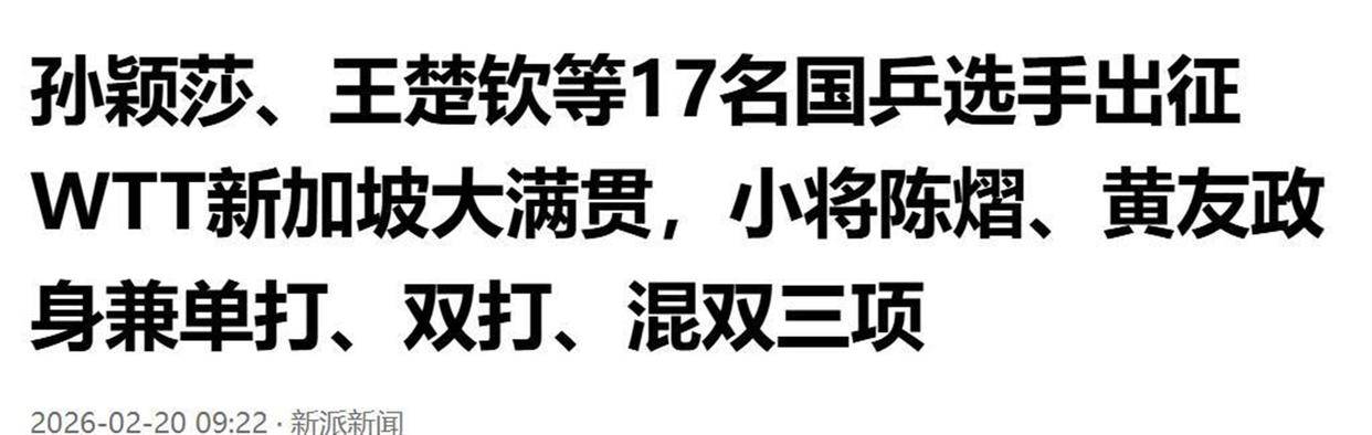 国乒这次派出的阵容,纸面上看绝对豪华,一共17人,8男9女。 男单由世界第一王楚钦和世界第二林诗栋领衔,后面跟着向鹏、周启豪、陈垣宇、陈俊菘,还有因为梁靖崑退赛而获得递补资格的20岁小将黄友政,以及持外卡参赛的温瑞博。 女单这边星光更璀璨,世界前八里国乒占了六席,孙颖莎、王曼昱、陈幸同、蒯曼、王艺迪、陈熠全部在列,再加上石洵瑶、何卓佳和持外卡的覃予萱。 但这份名单最引人注目的变化,不是谁来了,而是谁没来,以及谁的任务突然变重了。