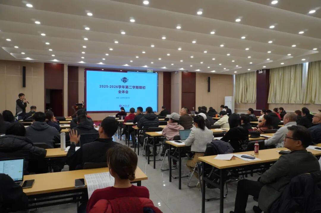 体育教研部党委书记陈征微传达了全校中层干部大会暨2026年春季学期工作部署会的会议精神。今年是中国成立105周年、“十五五”规划开局之年,也是学校深入推进新一轮“双一流”建设、奋力冲刺世界一流大学前列的关键之年。学校以“管理质效年”为年度工作主题,旨在通过提升治理体系和治理能力现代化水平,为学校发展注入新动能。