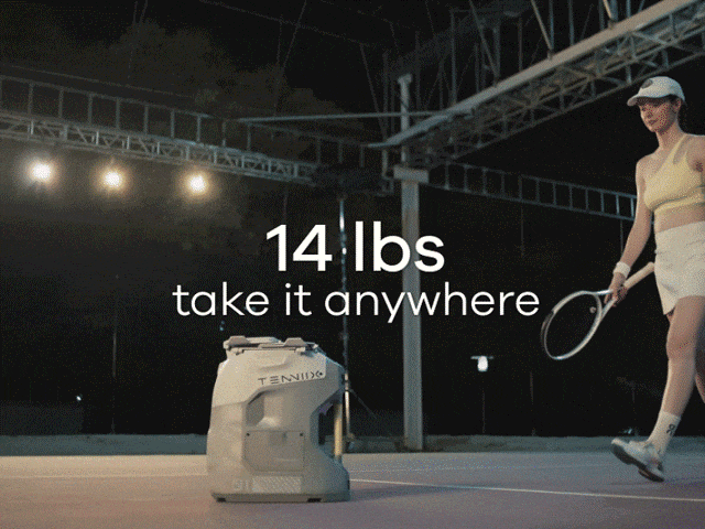 Tenniix 是一款兼具轻量便携功能与专业性能的智能网球设备,更是一位会观察、会思考、会回应你的 AI 对打伙伴。通过 QDD(半直驱驱动)创新结构设计,Tenniix 整机重量仅8.5kg,约为同级高性能发球机的一半,但可输出高达 75MPH 的球速与 5000RPM 的旋转,真实还原比赛级击球强度与节奏。