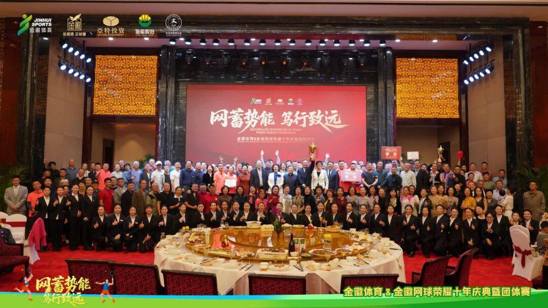 回溯金徽体育十年征程,杜楠主席始终以“赛场” 为起点,用热爱编织体育生态的经纬。十周年庆典期间,她频繁驻足赛场 —— 见证郑州队绝境逆转时的呐喊,感受女子队寒夜搏杀的坚韧,目光里满是对竞技活力的珍视;她也深入会长座谈会、巅峰论坛,直言:“体育生态不是孤立的赛场,而是让每个热爱网球的人都有归属。未来 3~5 年我们必定要破局创新,预知未来,链接世界。”晚宴灯光亮起时,杜楠拿起话筒,真情流露:“你来了,我来了,我们来了 —— 对十年的感悟,满是感激与感恩,也被大家的热情深深鼓舞。” 作为金徽体育的领航者,她的话语让每一位 “金徽人” 都感受到了归属感与使命感。最终,“网蓄势能,笃行致远,预知未来,链接世界” 的口号响彻全场,为这场十周年庆典画上了圆满的句号,也为金徽体育的下一个征程吹响了出发的号角!