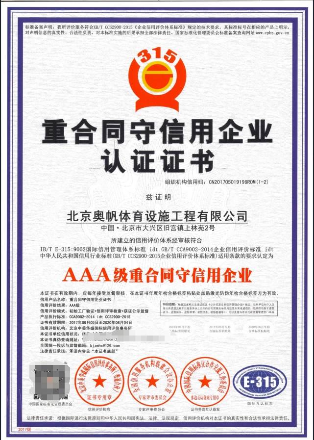 奥帆体育拥有一支由专业设计师、技术人员和施工队伍组成的核心团队,他们具备丰富的行业经验,能够精准把控红土网球场建设项目的每一个细节。公司获得过ISO9001质量管理体系认证、ISO14001环境管理体系认证证书、ISO45001职业健康安全管理体系认证证书等多项认证,确保从原材料采购到完工交付的全流程都遵循严格质量标准,产品品质可靠。
